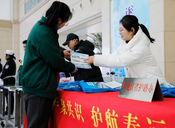 随着春运大幕即将拉开,为筑牢铁路运输安全防线,1月29日,中国铁路哈尔滨局集团有限公司联合黑龙江省及哈尔滨市护路办、铁路公安等部门,在哈尔滨站候车大厅开展铁路春运爱路护路主题宣传教育活动。